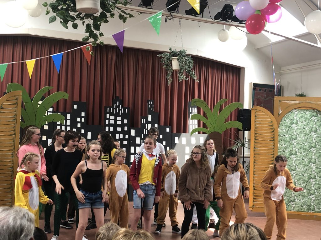 Het gekke was wel dat we in de Jungle ook een Bezig Bijtje tegenkwamen, een flamingo, een pinguin en zelfs een konijn. De kinderen verrasten ons met een leuke eindvoorstelling met heerlijke zang en dans. Op 19 mei werd sochtends een workshop georganiseerd waar familie en vrienden aan mee mochten doen. Aansluitend gaven de kinderen hun voorstellingen. We hebben echt een hele feestelijke dag gehad!